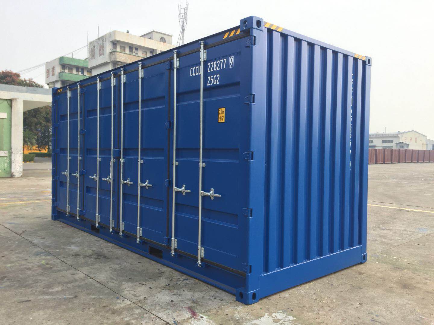 Insgesamt 12 Verriegelungsstangen an den Türen des Containers sorgen, neben dem Lockbox Sicherungssystem, für die diebstahlsichere Lagerung Ihrer Waren und Güter. Aus korrosionsfestem Stahl hergestellt, ist der 20 Fuß High Cube Side Door Seecontainer zudem standardmäßig mit einem Holzfußboden ausgestattet, der optional durch einen Stahlfußboden ausgetauscht werden kann. Der High Cube Side Door Seecontainer hat ein Leergewicht von ca. 2.250 kg und ein Volumen von 37,4 m³ und garantiert viel Raum für Ihre Ideen. Größe und Gewicht unserer Container unterliegen ISO-Normen.