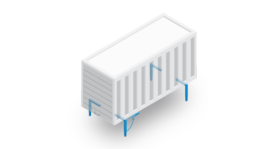 Wechselbrücken sind austauschbare Ladungsträger und vereinfachen Transport und Logistik. Für die Be- und Entladung von LKW ebenso wie für die Frachtübernahme von LKW zu LKW ist die Wechselbrückentechnologie das effiziente Mittel der Wahl. Die vier Stützbeine an den Seiten werden heruntergeklappt und geben damit einen sicheren Stand für den Fahrzeug- und Behältertausch.