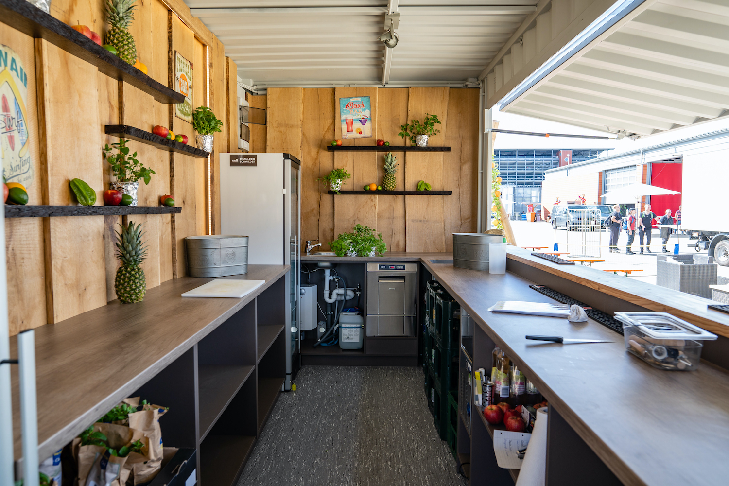 Die Inneneinrichtung Ihres Barcontainers können wir für Sie zudem aus edlem Holz gestalten sowie den Fußboden mit einem wischfesten PVC-Belag auslegen. Dann müssen nur noch Wasser, Strom und Bierfässer angeschlossen werden – und los geht das Fest! Dank der übersichtlichen Einrichtung mit hochwertigen Geräten kann Ihr Personal sofort loslegen und routiniert arbeiten. Zuverlässig und professionell.